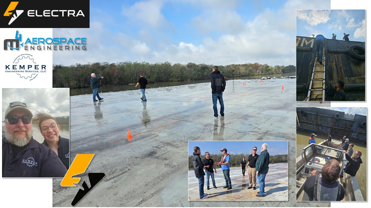 Electra Aero is a leader in developing commercial applications of electric-powered fixed-wing aircraft. We are excited to augment M4 Engineering’s support for Electra Aero, to include meeting up in Morgan City, Louisiana, to look at a series of barges that could potentially support ongoing developments. KES has a long history of supporting other engineering firms by providing additional expertise and overflow work capacity.